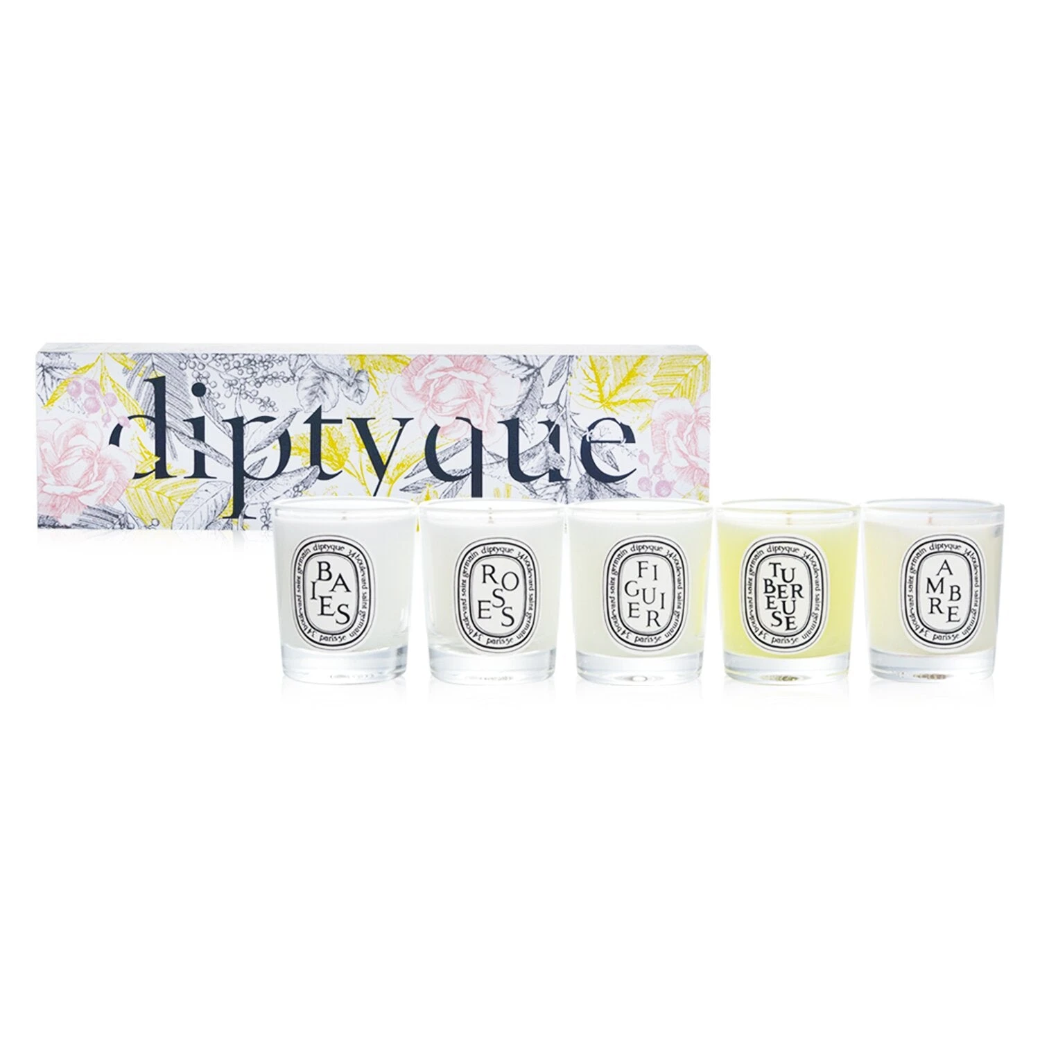 Diptyque Scented Candles Set – Berries, Roses, Fig Tree, Tuberose, Amber 5x35g/1.23oz